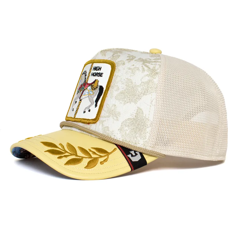 Weiße und beige Trucker-Kappe Pferd High Horse Altus Equo Carousel The Farm von Goorin Bros.