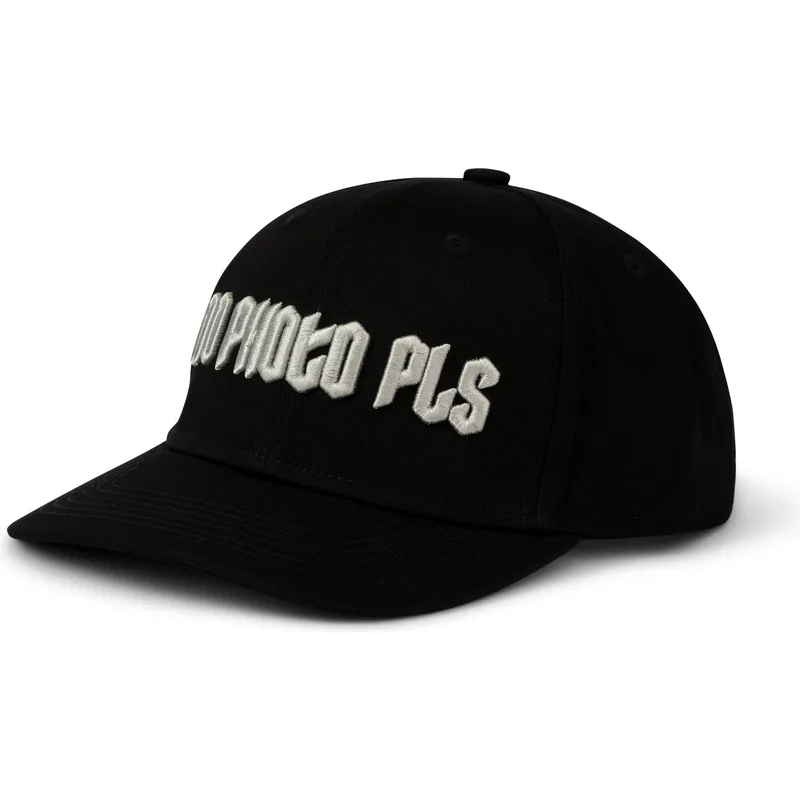 Die gebogene schwarze Snapback-Kappe No Photo Pls von Pica Pica ist das perfekte Accessoire für urbane Mode- und Streetwear-Liebhaber. Mit dem auf der Vorderseite aufgestickten Markenlogo zeichnet sich diese Kappe durch ihren kühnen und avantgardistischen Stil aus. Durch sein Unisex-Design eignet es sich für Männer und Frauen, die ein vielseitiges Accessoire voller Persönlichkeit suchen.