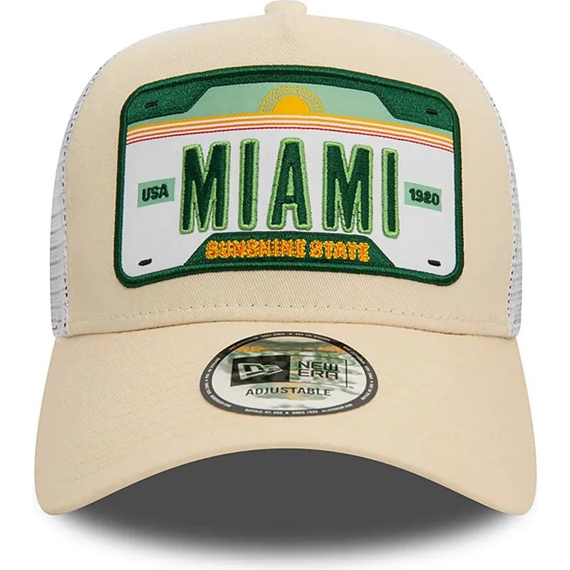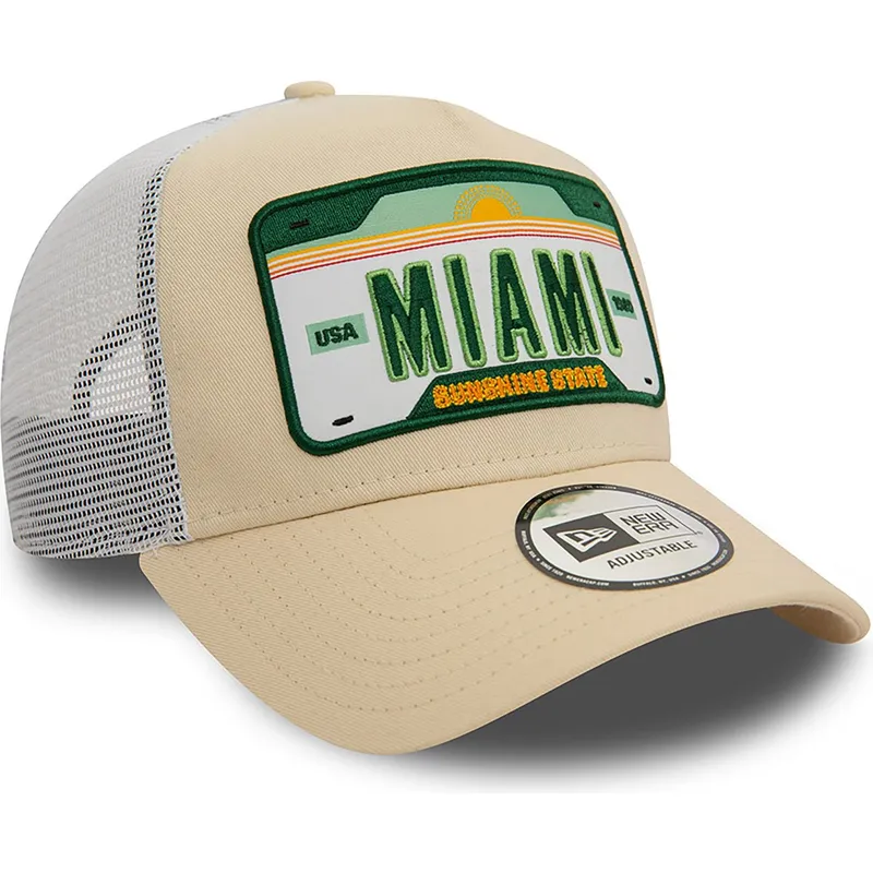 Beige-weiße Trucker-Kappe A Frame License Plate Miami Cities and Beaches von New Era