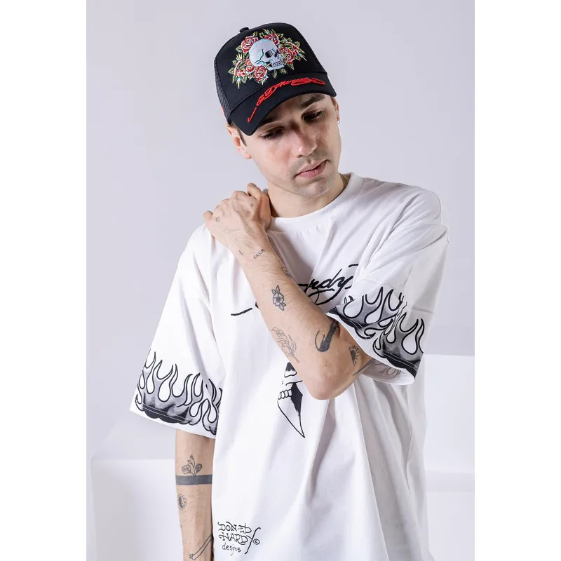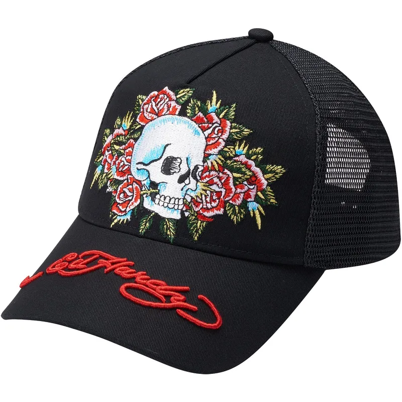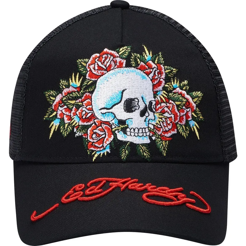 Schwarze Trucker-Kappe Skull Rose von Ed Hardy