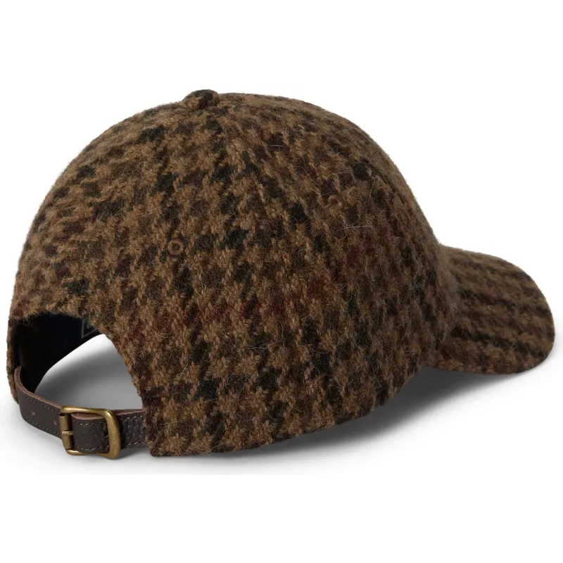 Verstellbare braune Kappe mit gebogenem Schirm aus kariertem Wolltweed von Polo Ralph Lauren