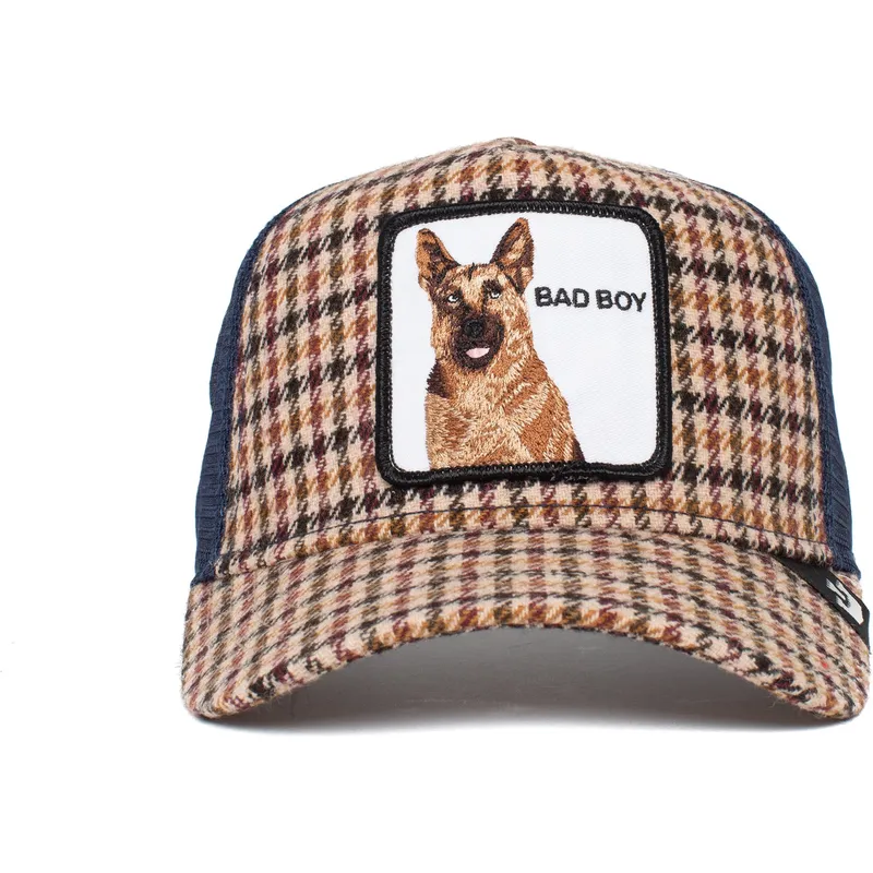 Goorin Bros. Trucker Cap Beige und Blau Deutscher Schäferhund Bad Boy Big Bad Woof The Farm.