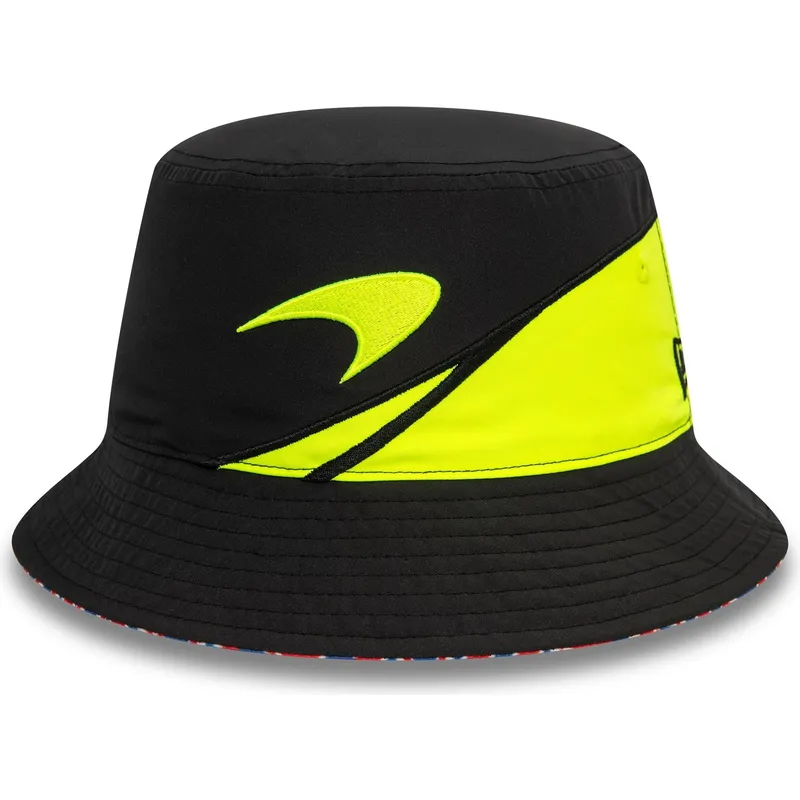 Schwarzer und gelber Silverstone Lando Norris McLaren Racing Formel 1 Eimerhut von New Era