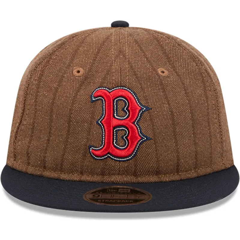Kepsens design utmärker sig genom sin kombination av bruna och marinblå toner, vilket ger en mycket elegant retrokänsla, perfekt för dem som söker en annorlunda stil inom den omfattande katalogen av officiella Boston Red Sox-produkter. Ullstrukturen med fina pinstripe-linjer ger en sofistikerad detalj, typisk för New Eras kollektioner som blandar tradition med aktuella trender. Denna keps återspeglar inte bara lagets anda utan erbjuder också hållbarhet och komfort för vardagligt bruk eller vid sportevenemang.